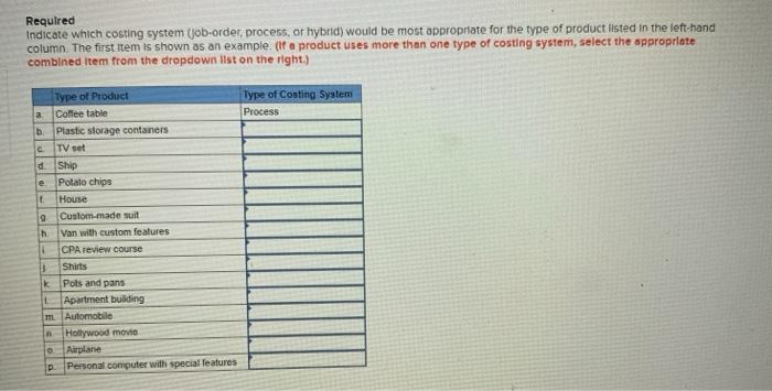 A hybrid costing system would be most appropriate when. Process costing systems would be used for the mass produced parts like the bike frames. Large quantities of identical products are being produced. A manufacturer is able to standardize processes while at the same time attempting to meet individual customer needs. The volume of production is low and costs are high. A hybrid costing system would be most appropriate when A A manufacturer is able from ACC 400 at University of Phoenix. A hybrid costing system would be most appropriate when. A system that mass-produces a single homogenous output in a continuous process is a n. Asked Sep 17 2019 in Business by boneshiko.